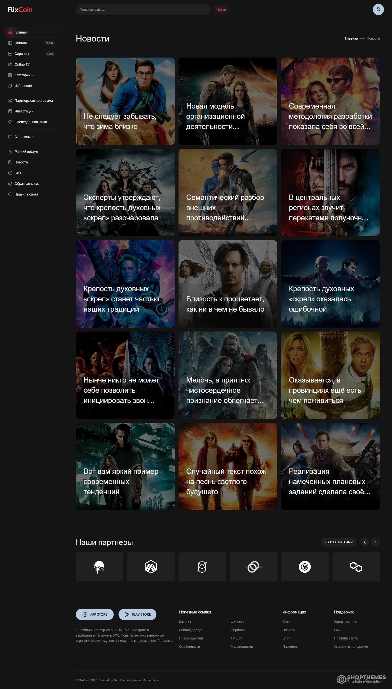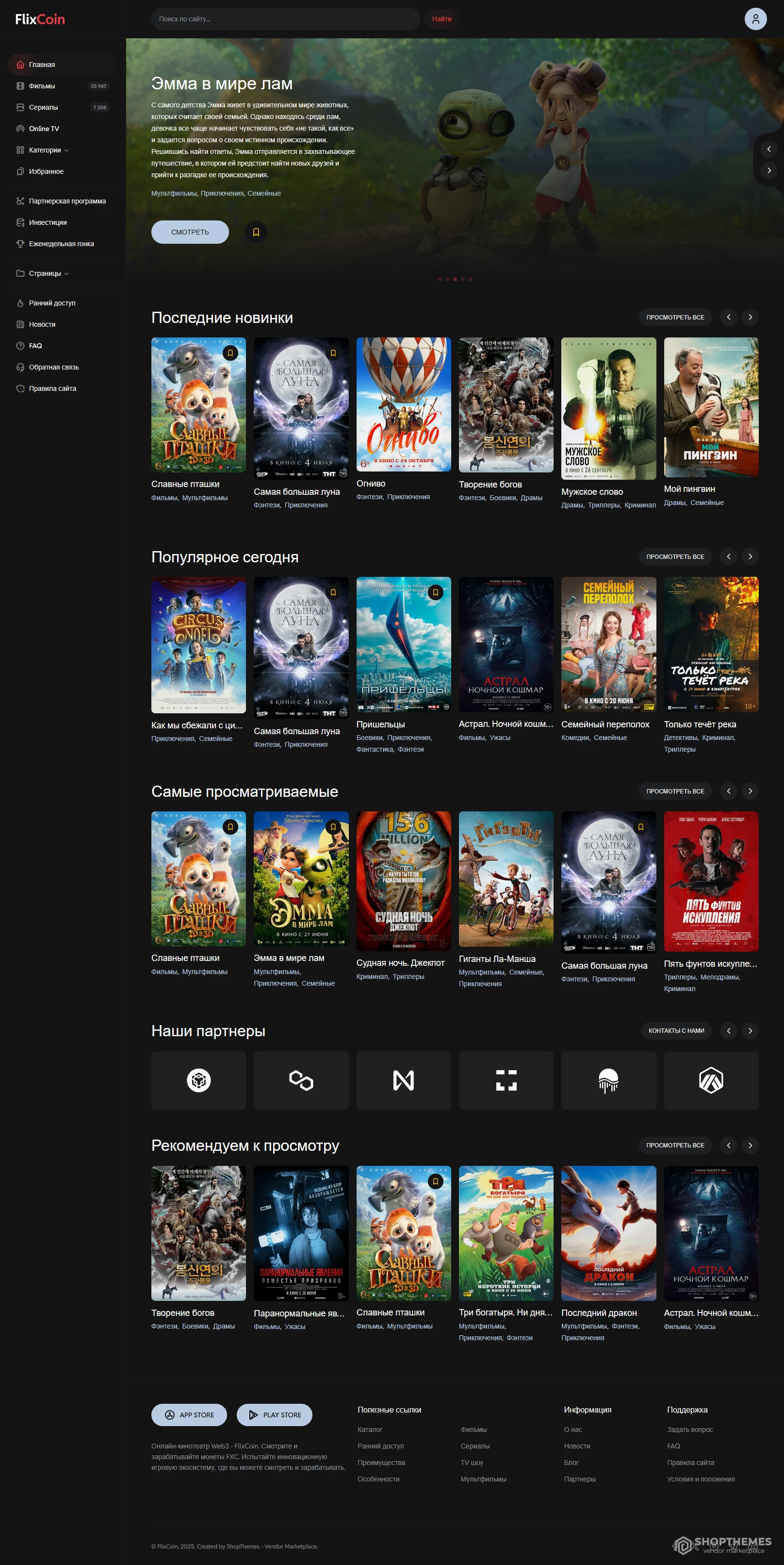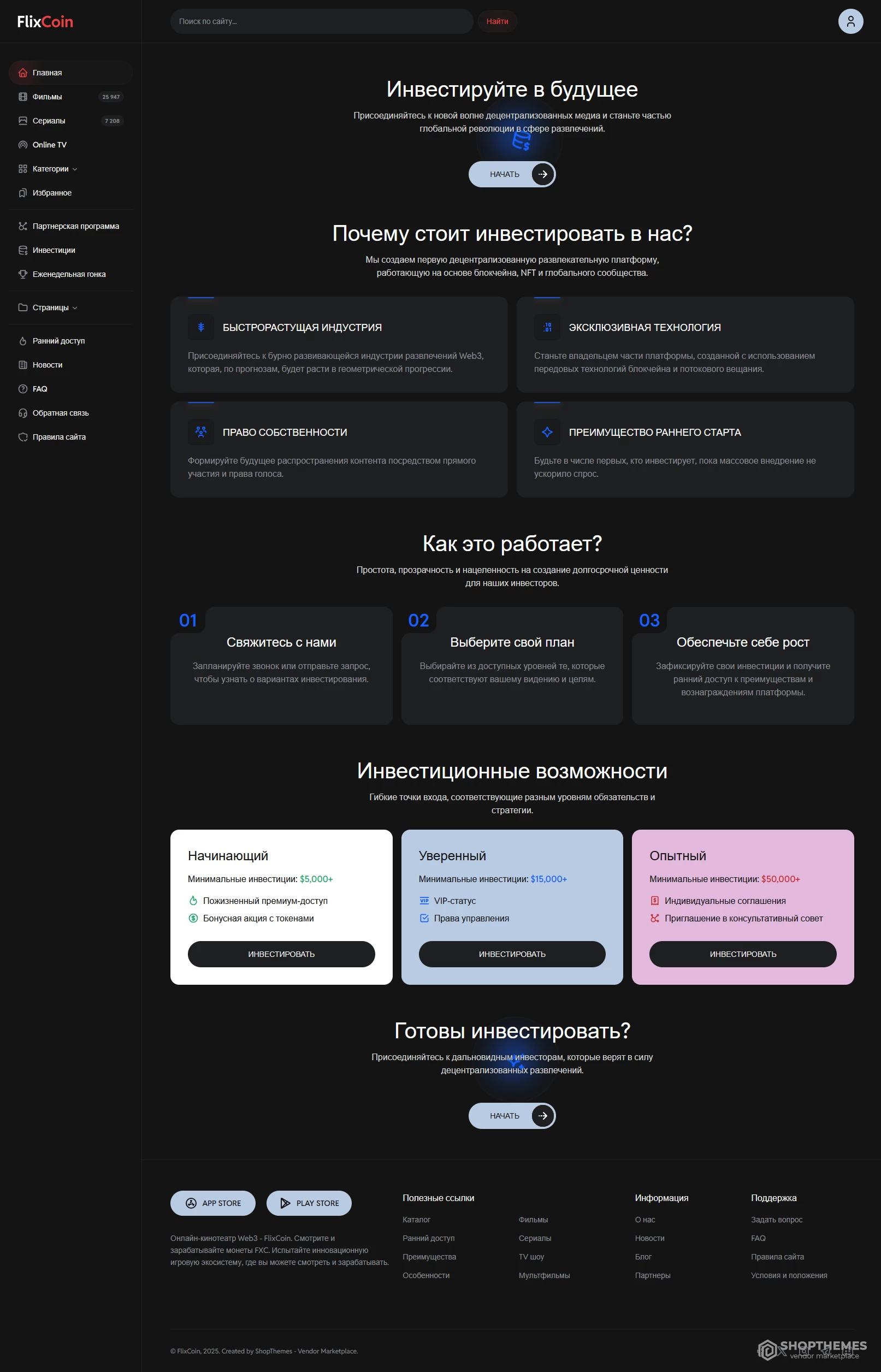 Шаблон FlixCoin для DLE – ваше комплексное решение для запуска современного, увлекательного и безопасного онлайн-кинотеатра Web3. Независимо от того, запускаете ли вы новый сайт или обновляете существующий, наш шаблон предоставит вам гибкость и простоту для создания уникального, захватывающего опыта для вашей аудитории.