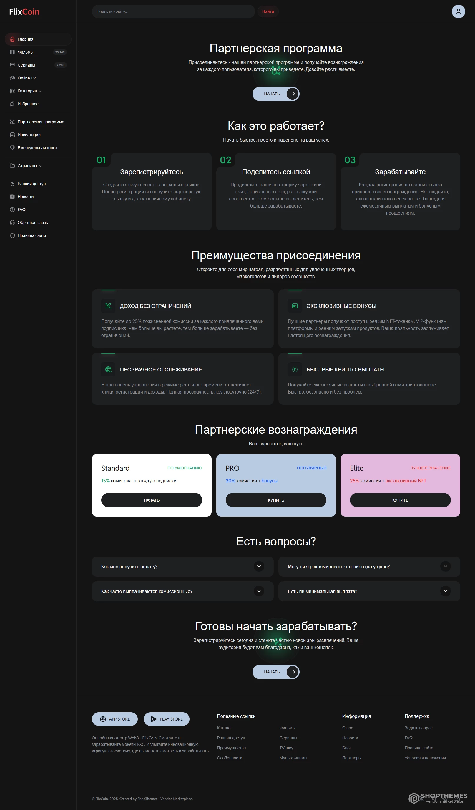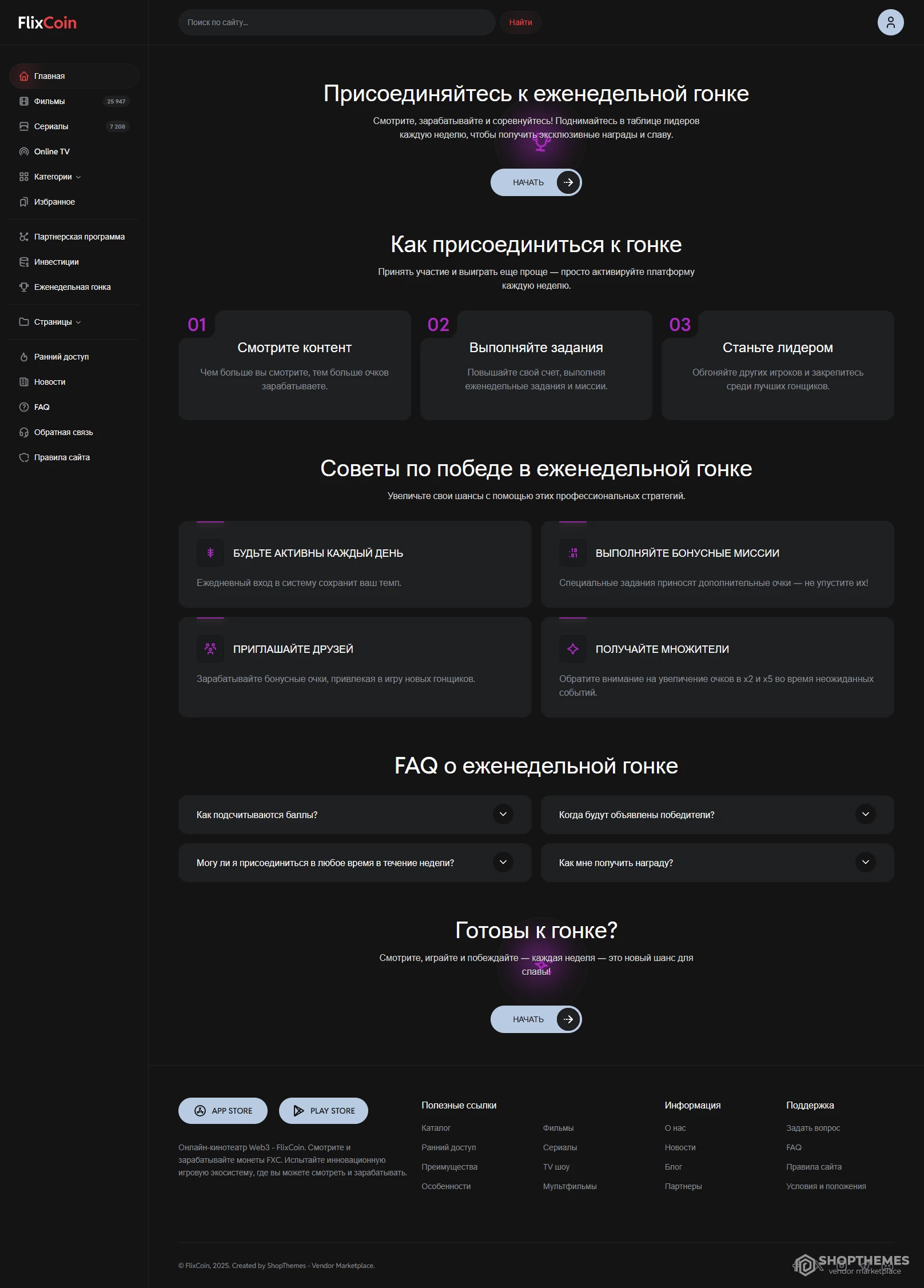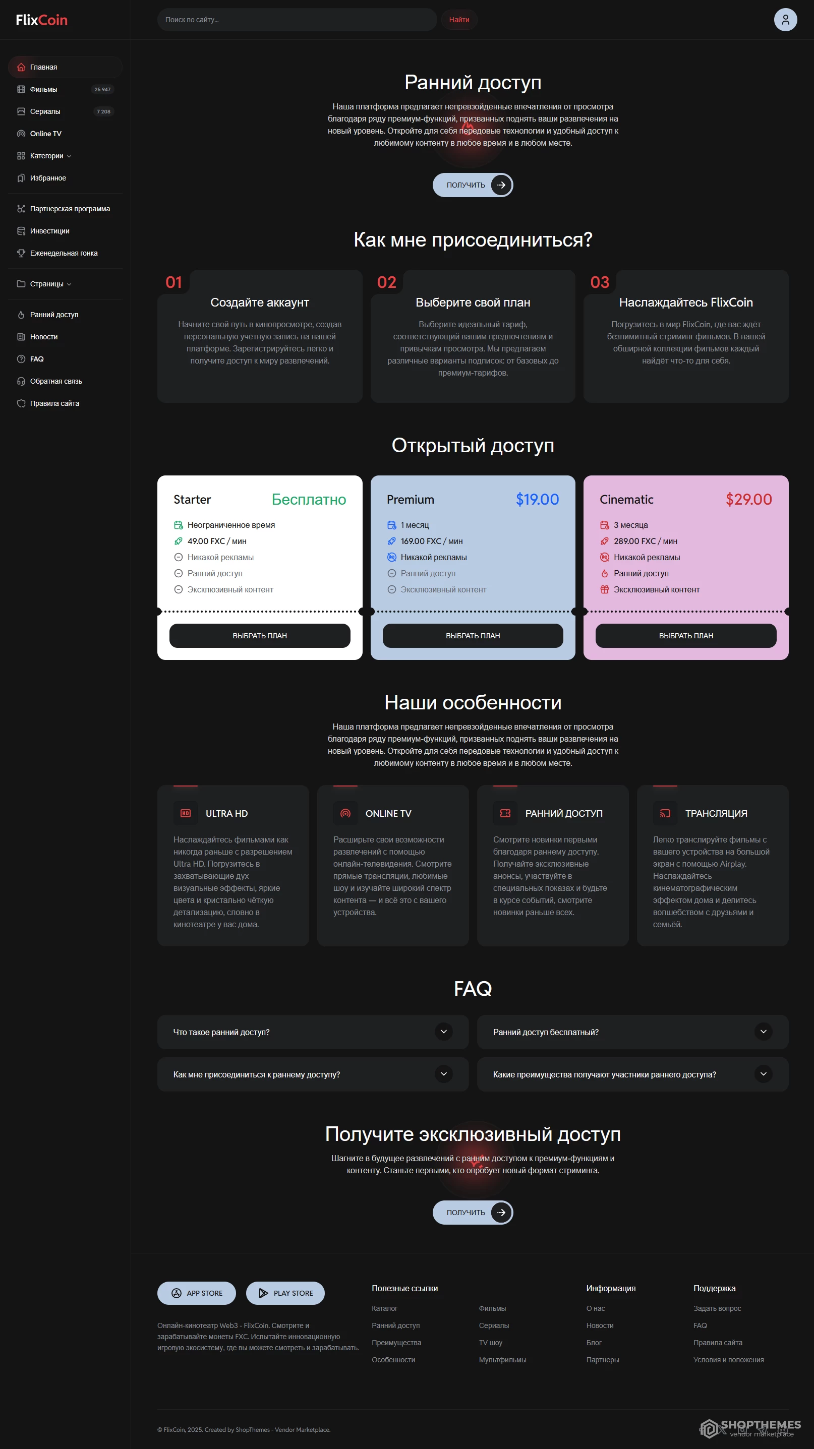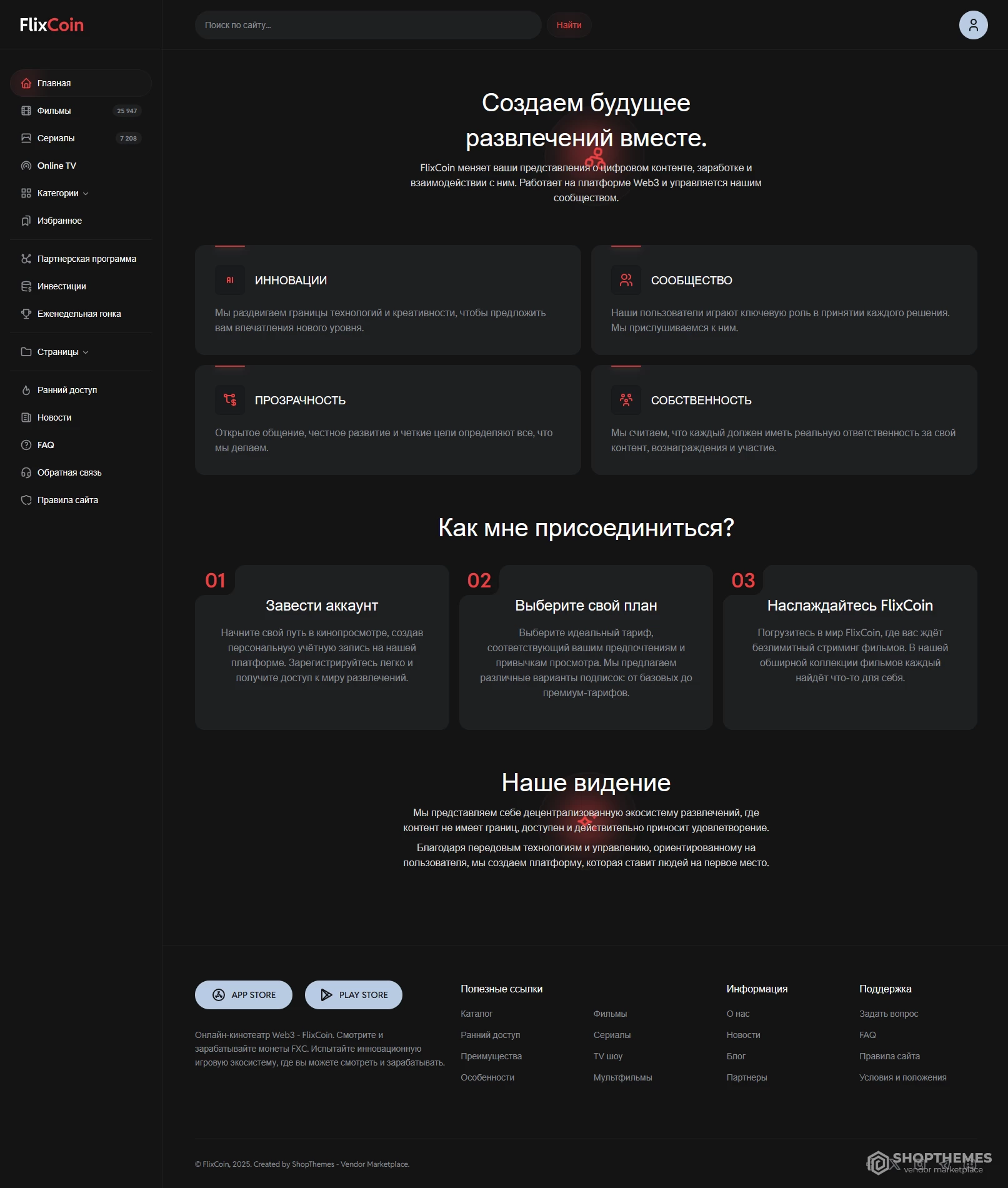Не упустите возможность оказаться в авангарде революции в сфере развлечений. Получите DLE-шаблон FlixCoin для онлайн-кинотеатра Web3 сегодня и начните строить будущее цифрового потокового вещания!