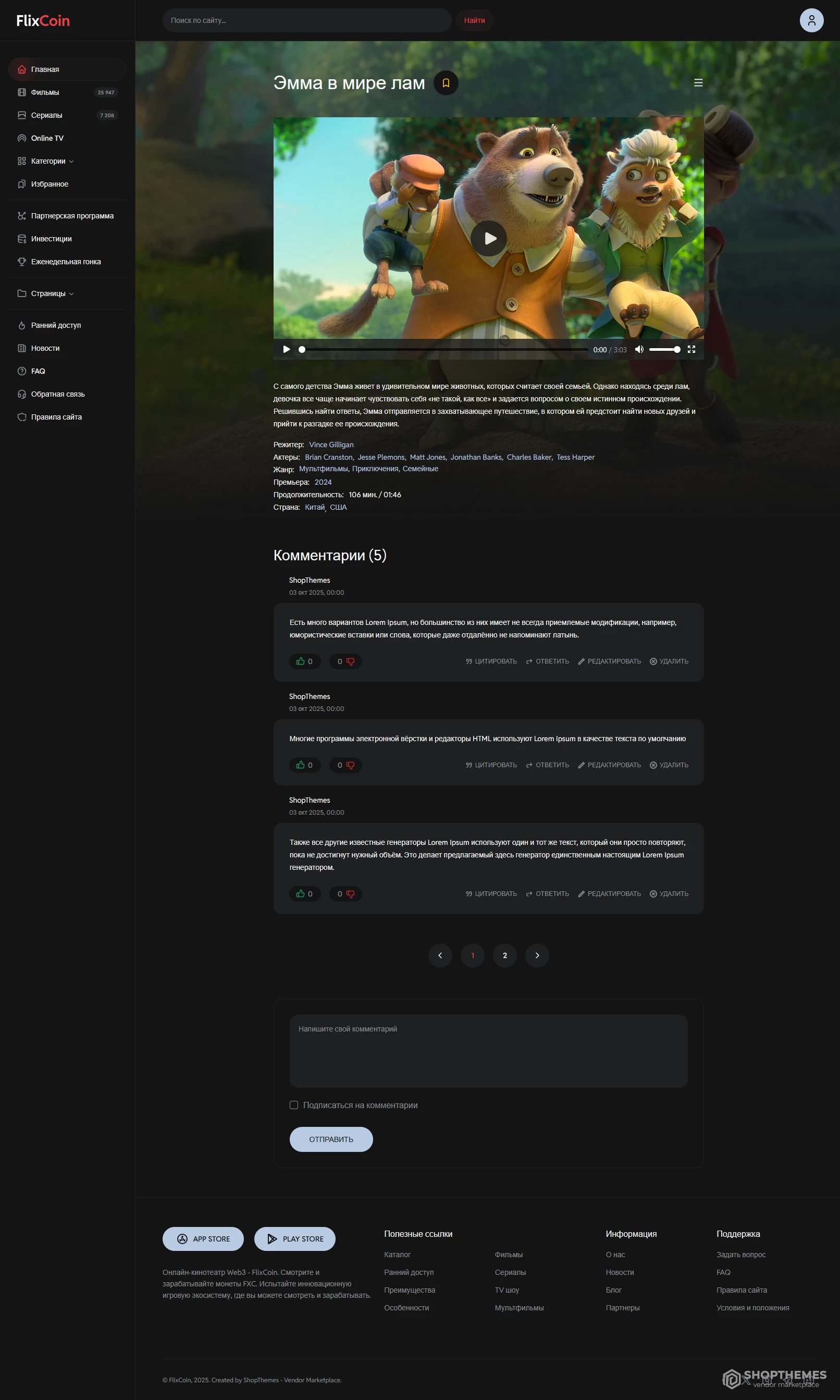 Представляем передовой DLE-шаблон, специально разработанный для нового поколения платформ онлайн-кинотеатров. Этот шаблон идеально подходит предпринимателям и разработчикам, стремящимся запустить собственный стриминговый сервис на базе Web3. Наш шаблон предлагает гармоничное сочетание стиля, функциональности и инноваций, предоставляя всё необходимое для создания онлайн-кинотеатра.