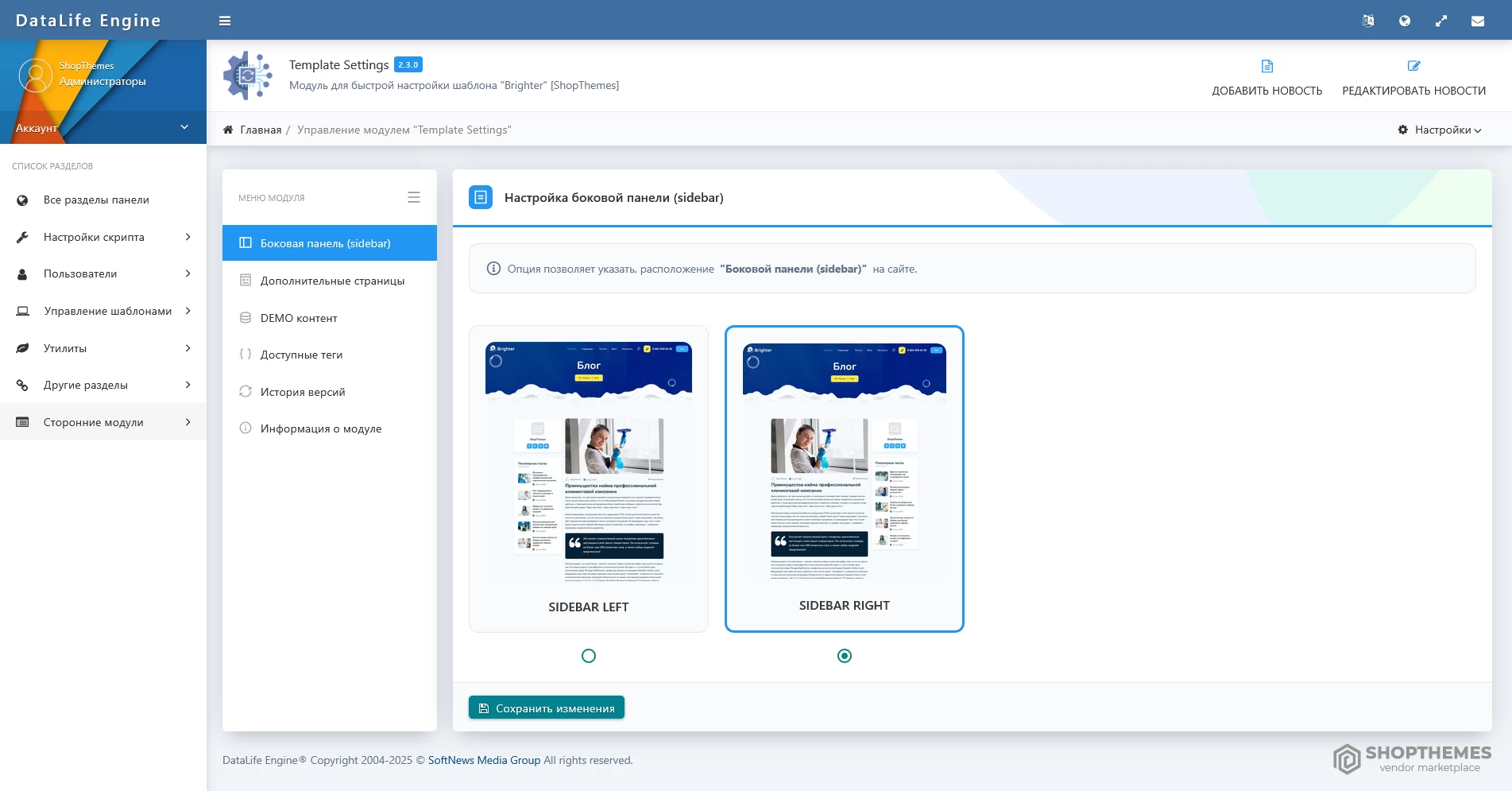 - Модуль Template Settings (позволяет быстро настроить отображение шаблона в пару кликов. Автоматически создаст нужные страницы для правильной работы шаблона)