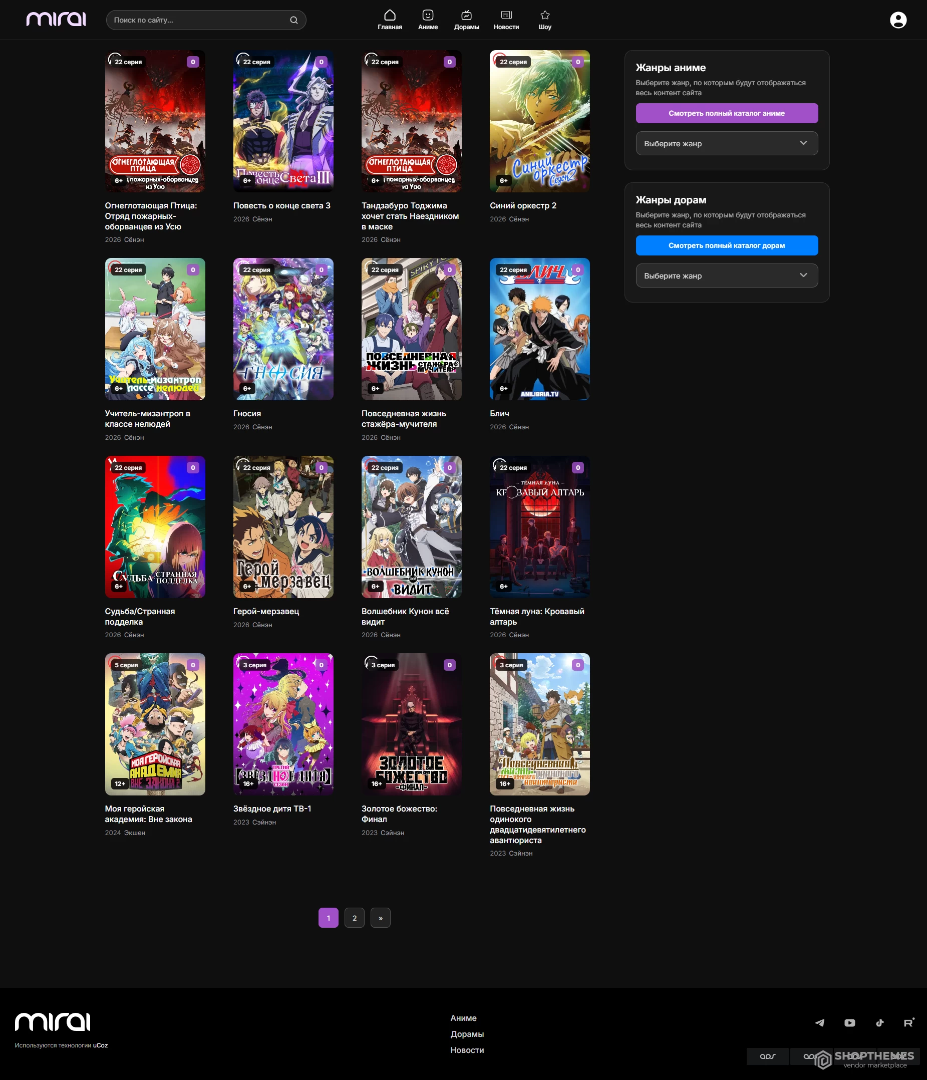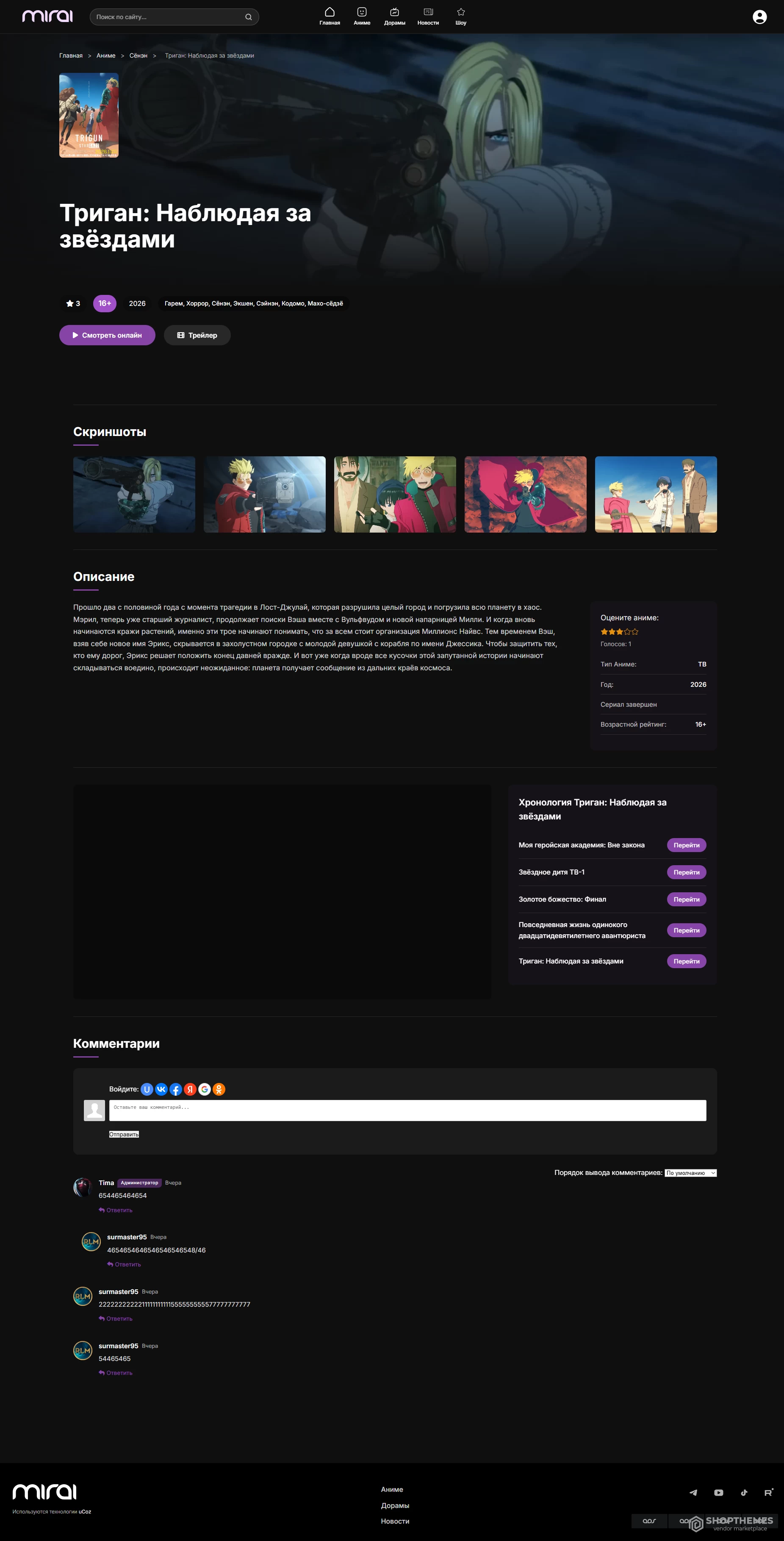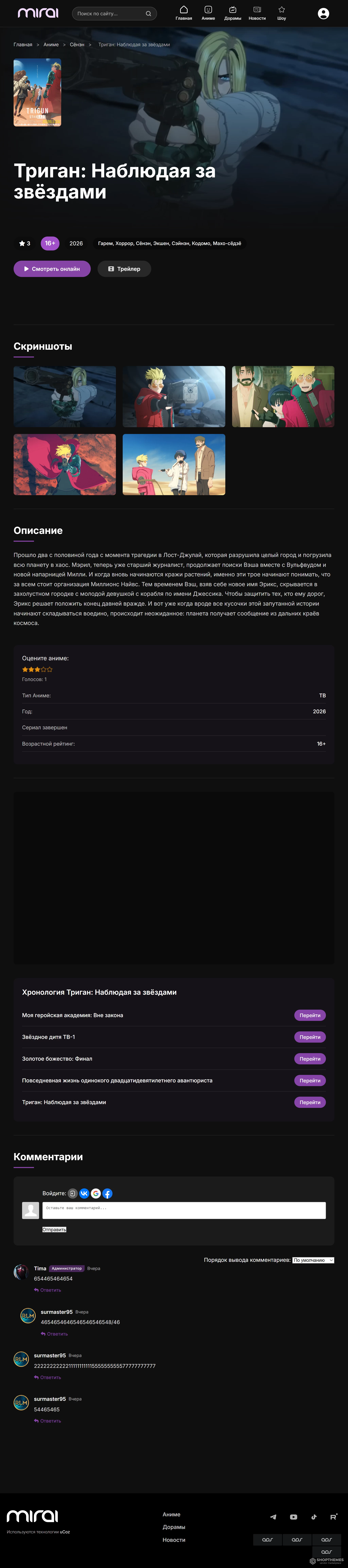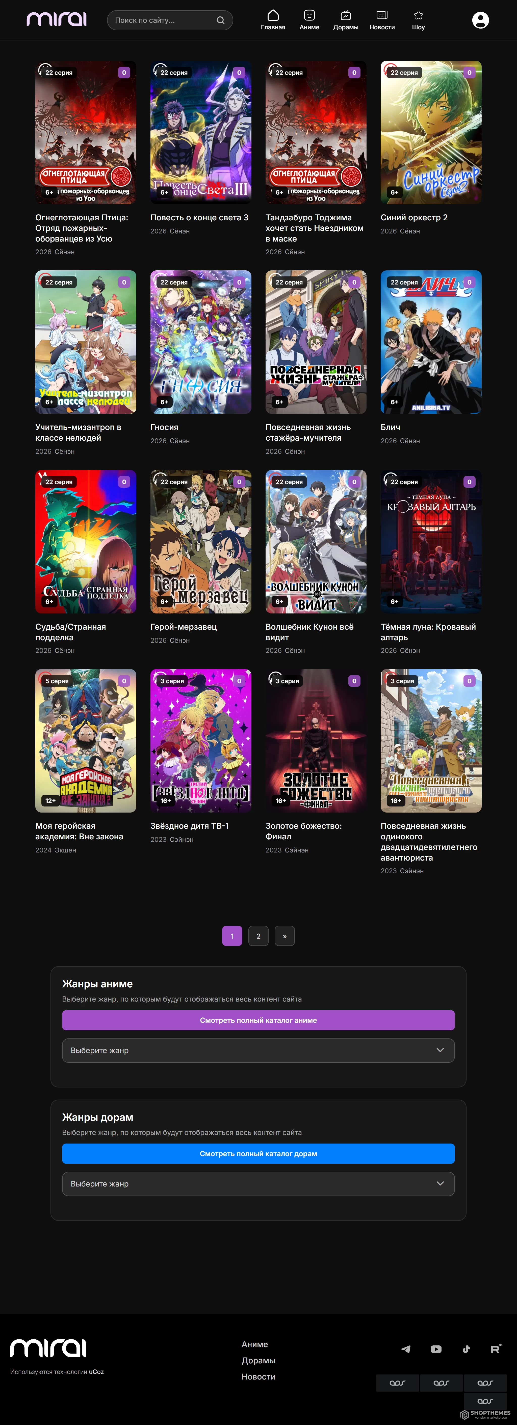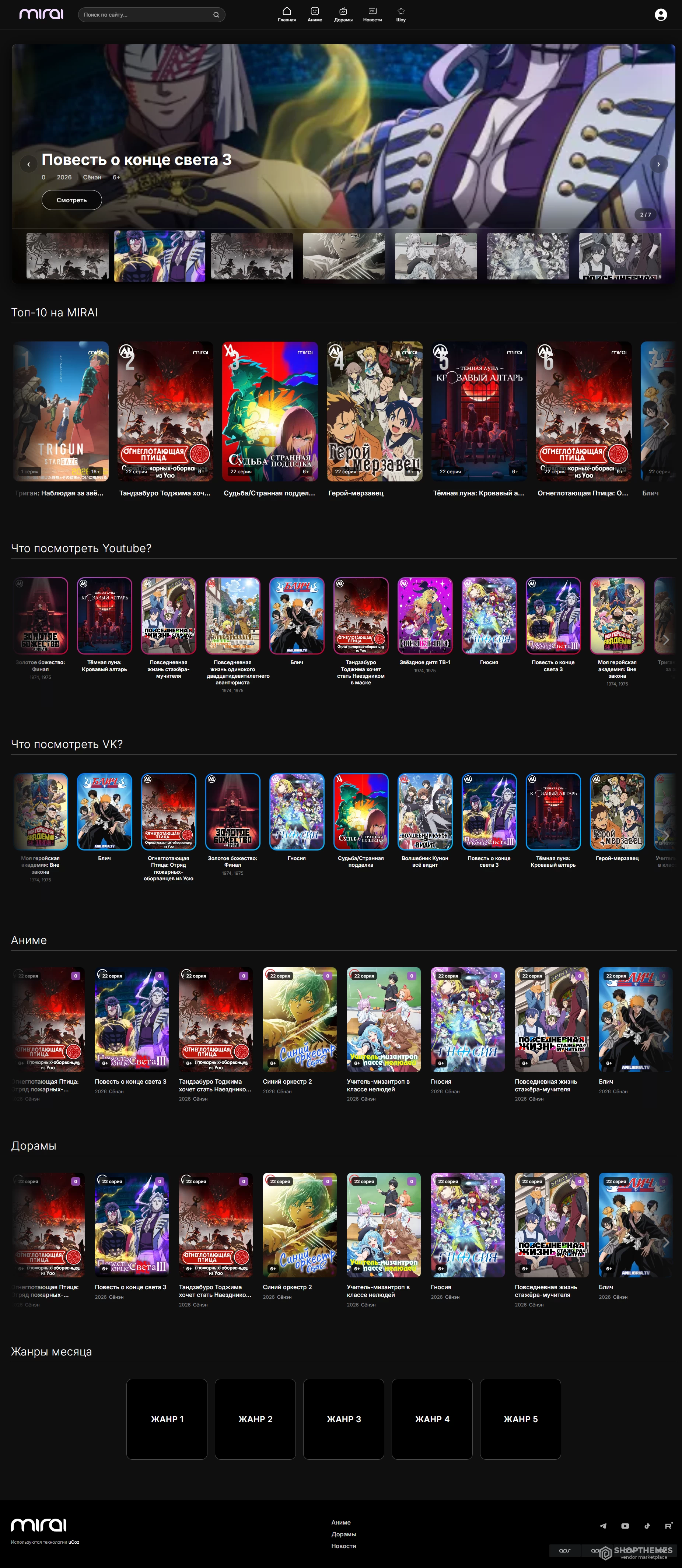 Mirai — концептуально продуманный шаблон, который превратит вашу медиатеку в современный, захватывающий и невероятно удобный портал. Созданный фанатом для фанатов, он учитывает каждую деталь: от первого впечатления на главной до погружения в контент на любом устройстве.