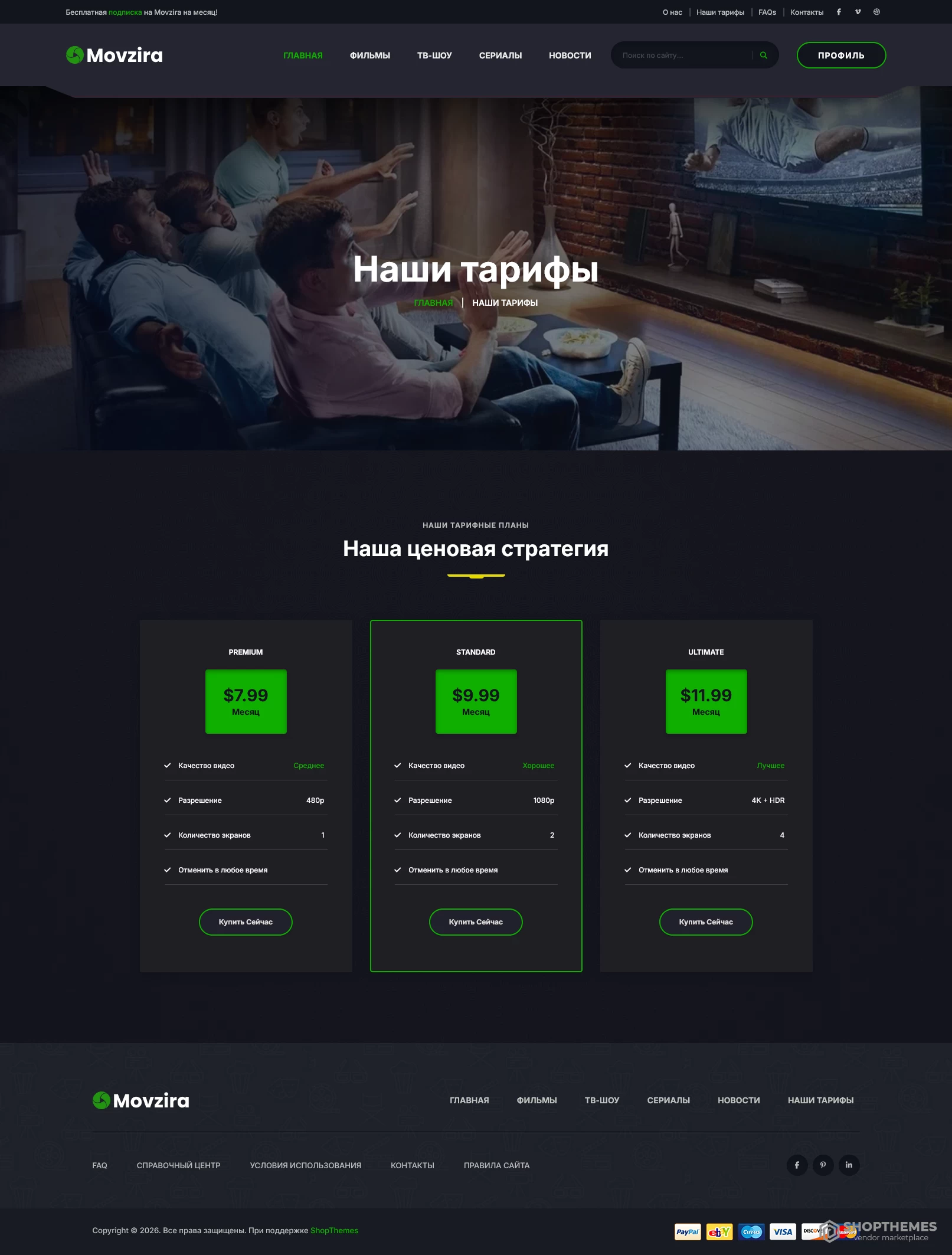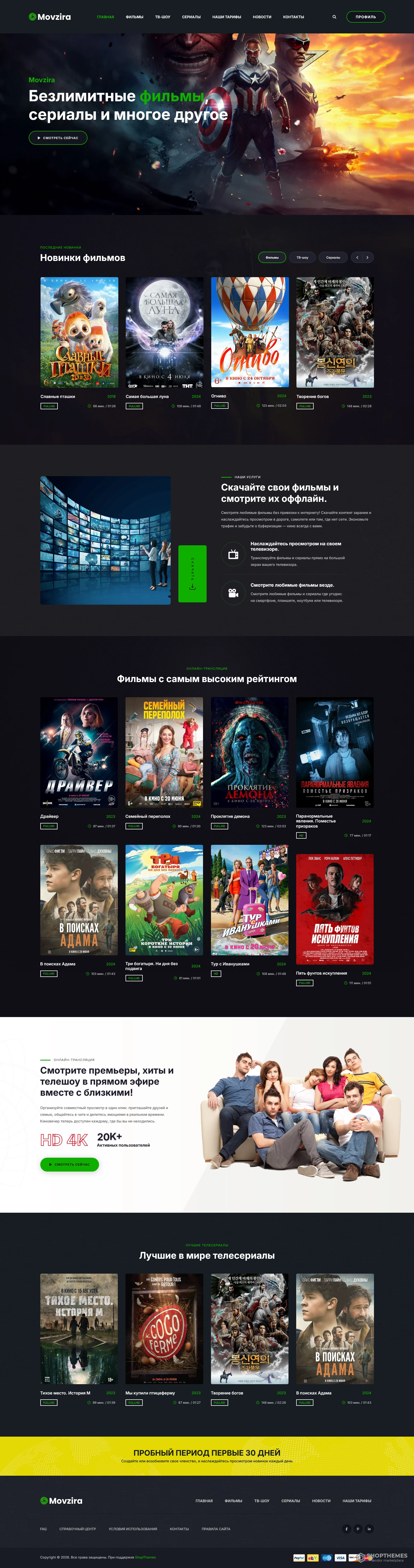 Таким образом, шаблон Movzira станет идеальным решением для тех, кто хочет создать визуально приятный и эффективный ресурс, посвященный киноиндустрии и видеоконтенту.