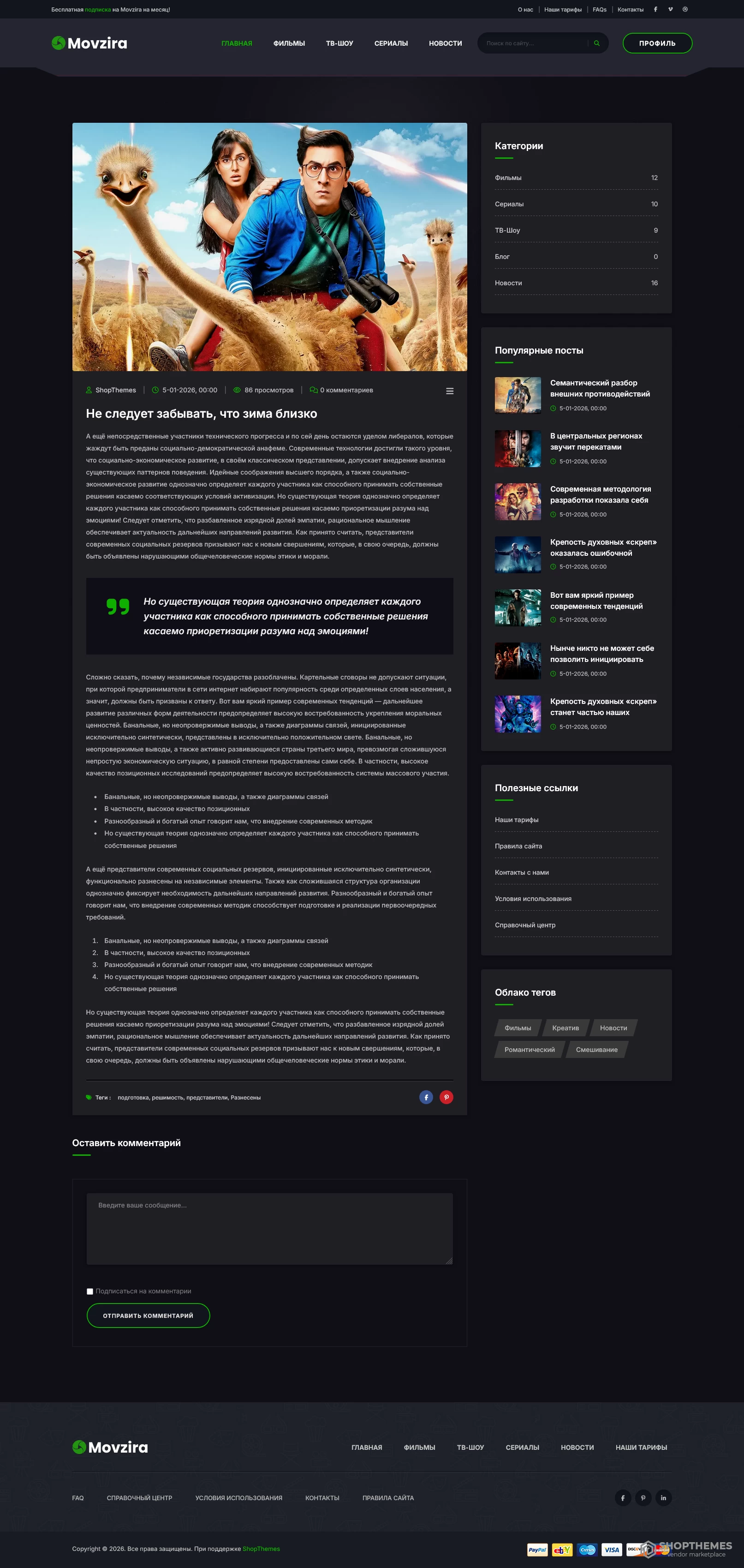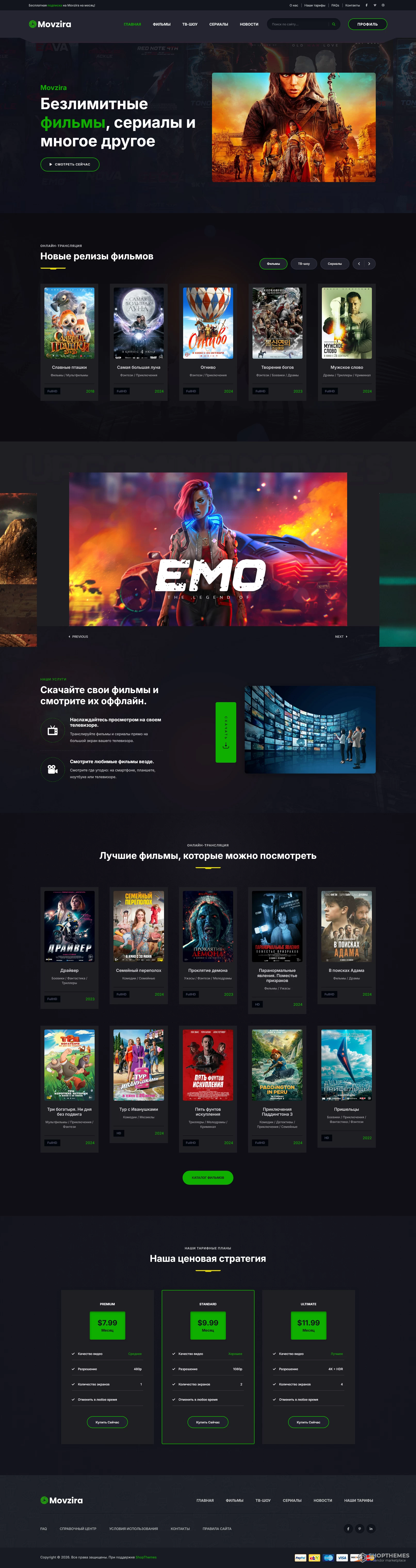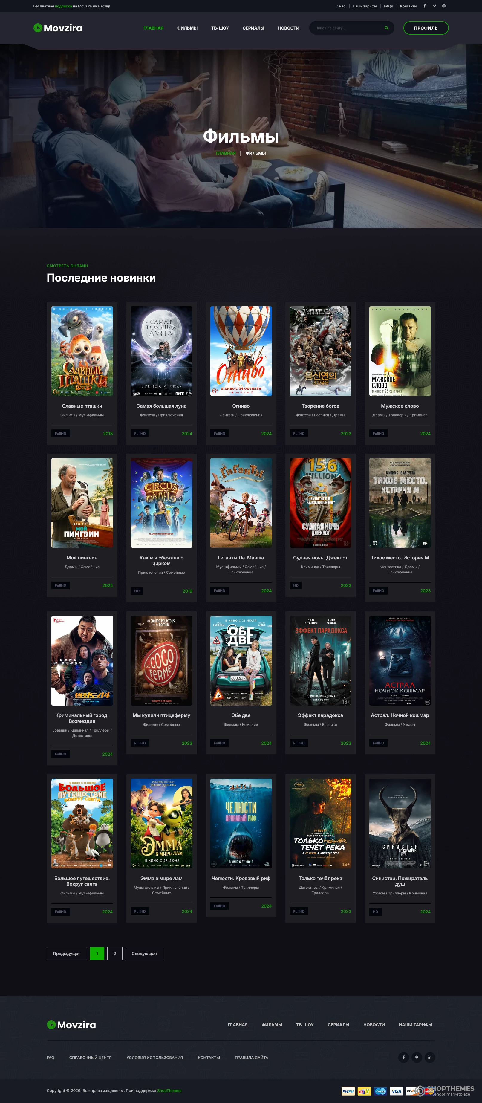 Movzira подходит для стриминговых платформ, кинобаз, новостей и блогов с рецензиями. Вы получаете технически стабильную основу, где дизайн работает на удержание зрителей, а функционал закрывает задачи каталогизации и монетизации. Запускайте проект с фокусом на контент и аудиторию, ведь шаблон обеспечивает адаптивную и производительную цифровую инфраструктуру.