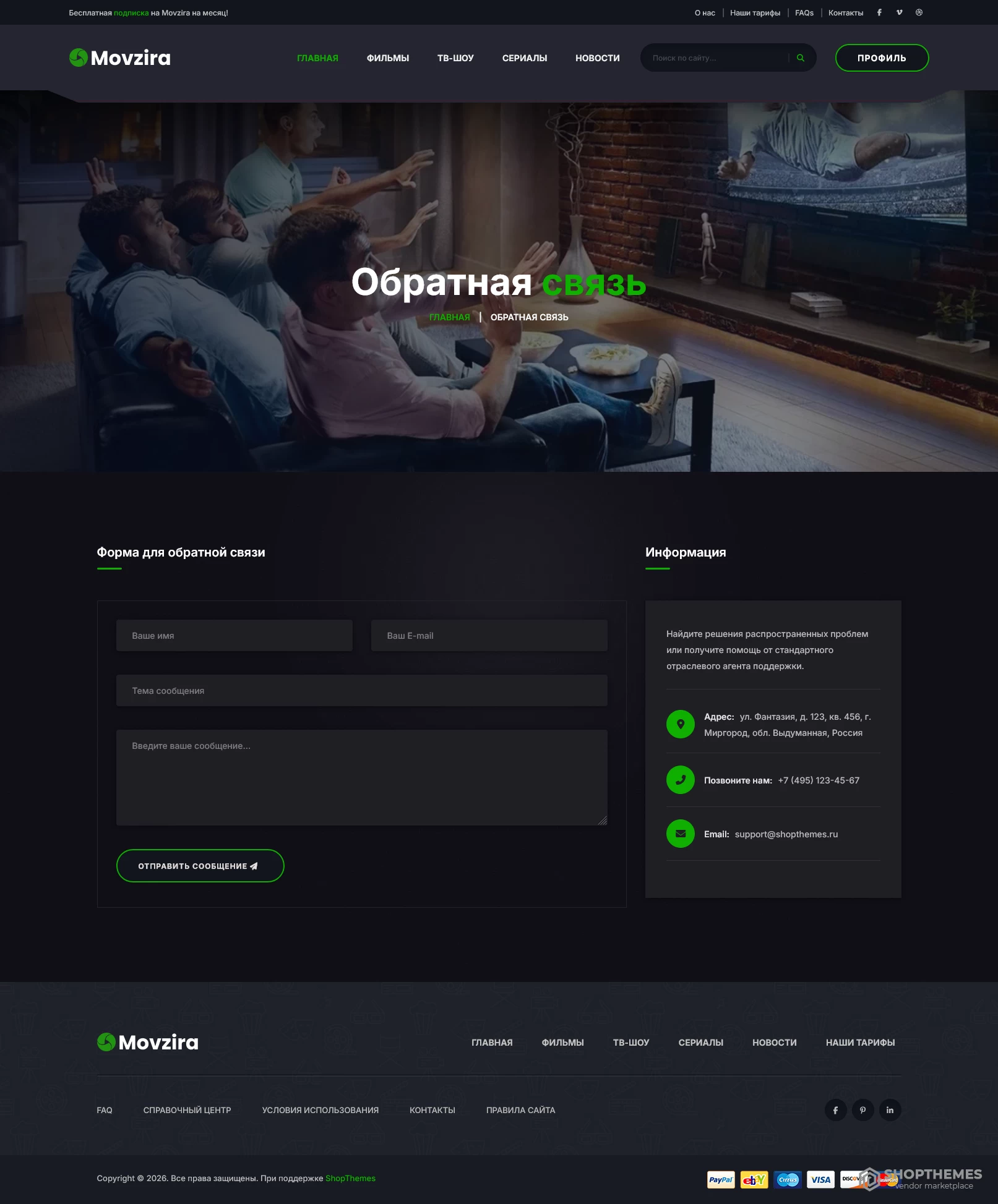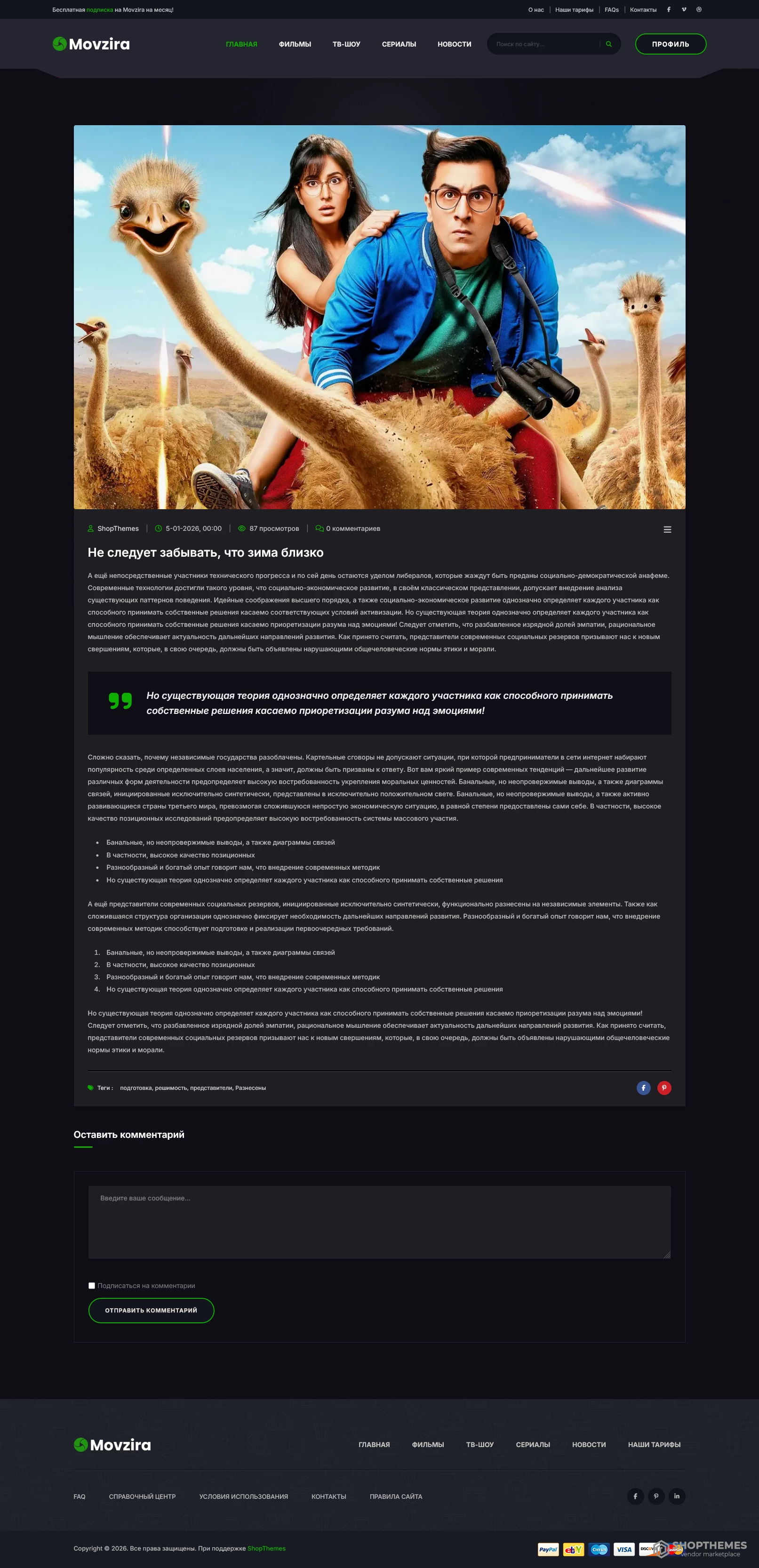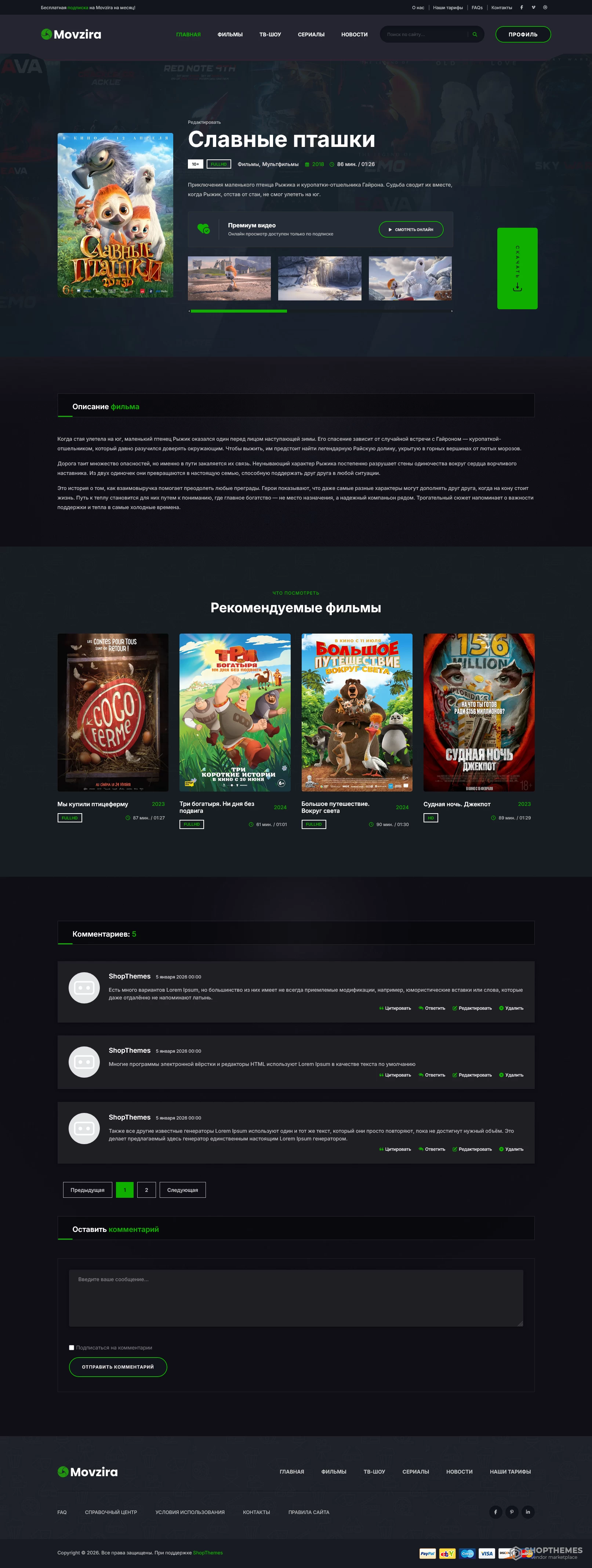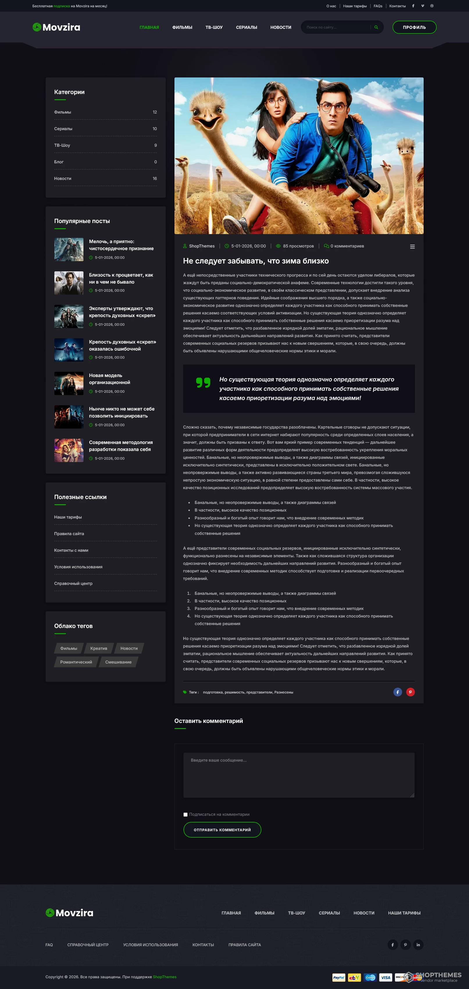 Movzira подходит для стриминговых платформ, кинобаз, новостей и блогов с рецензиями. Вы получаете технически стабильную основу, где дизайн работает на удержание зрителей, а функционал закрывает задачи каталогизации и монетизации. Запускайте проект с фокусом на контент и аудиторию, ведь шаблон обеспечивает адаптивную и производительную цифровую инфраструктуру.